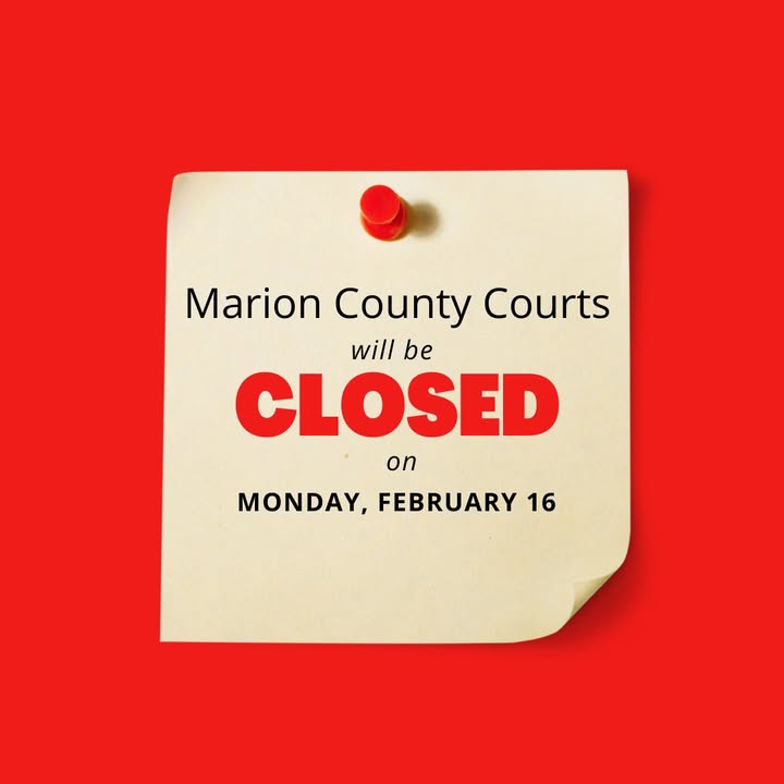 Marion County Courts will be closed on Monday, February 16, 2026.